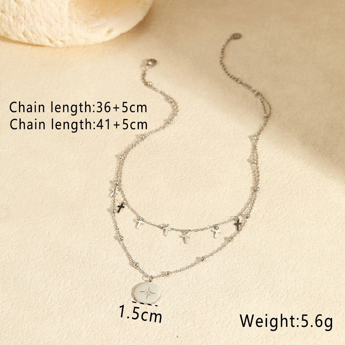 GLANZI Doppelreihige Halskette – Kreuz & Sternenmedaillon Anhänger, 18K Vergoldeter Edelstahl
