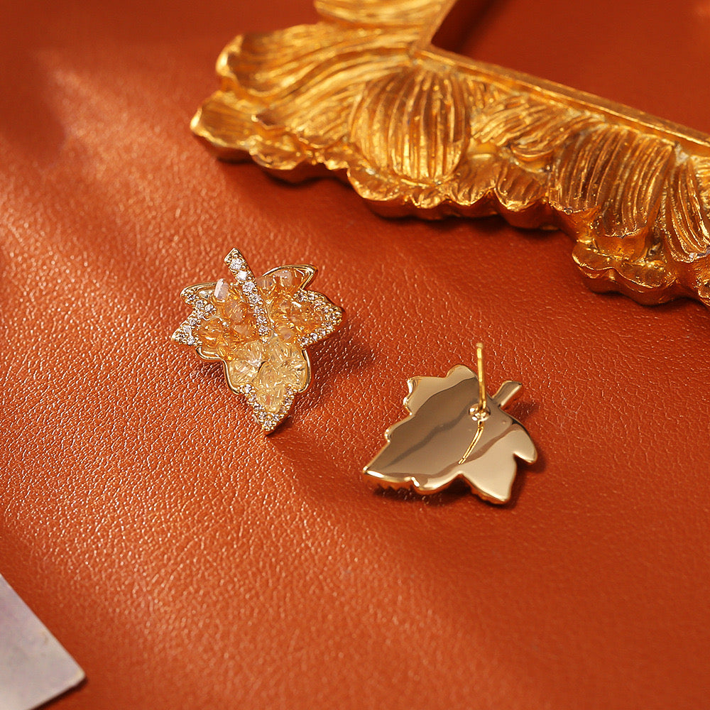 GLANZI Kristall Blatt Ohrringe – 18K Vergoldet, S925 Silberstecker