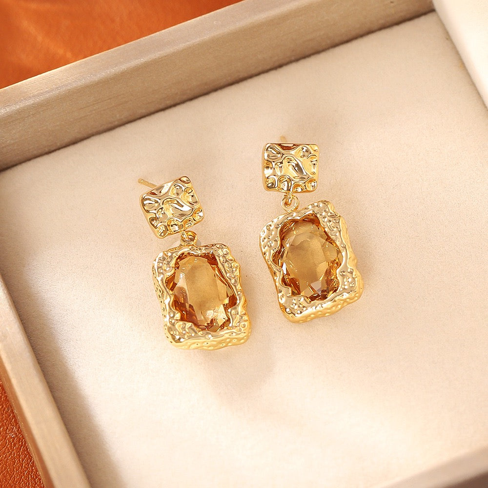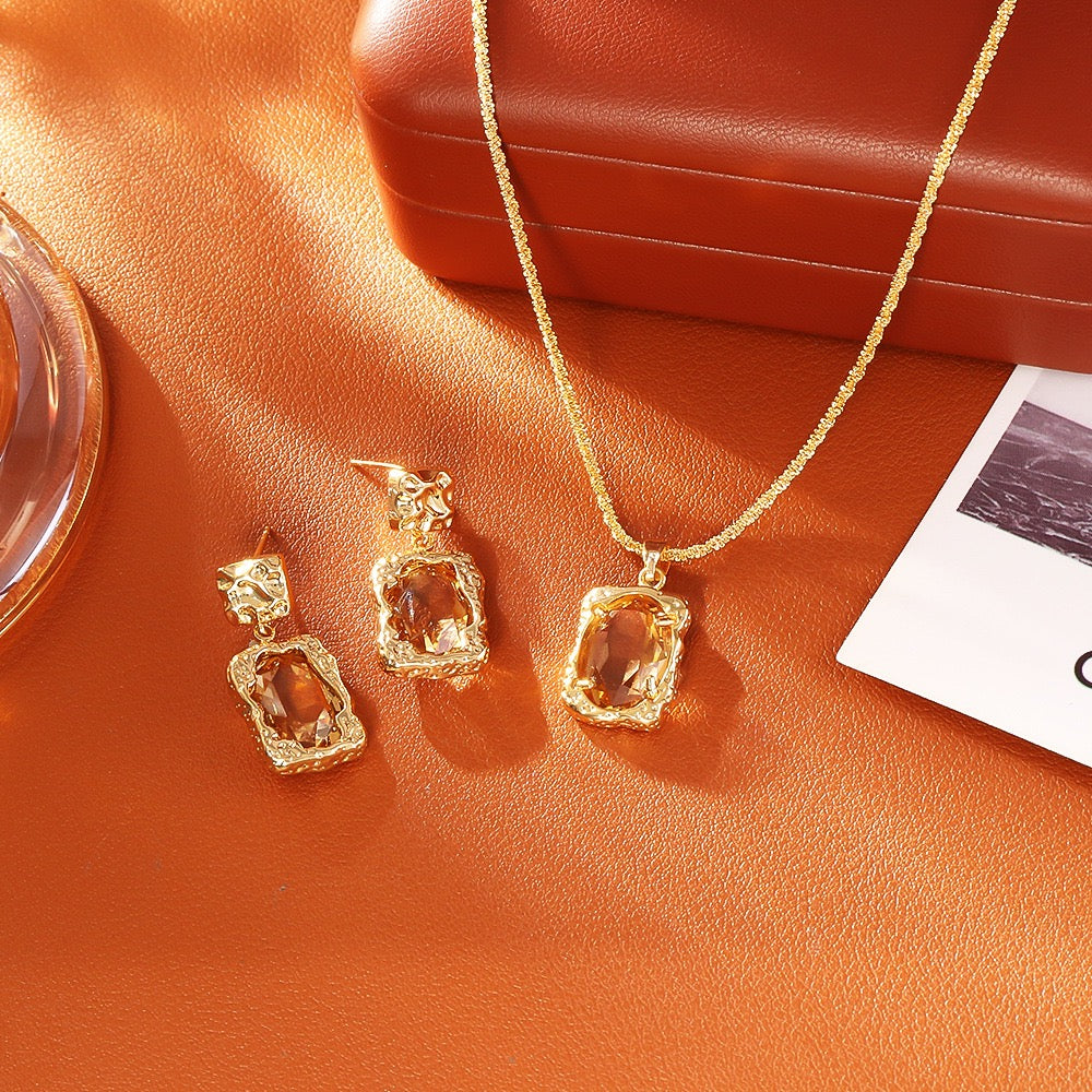 GLANZI Halskette & Ohrringe - Transparenter Kristall im Merlot-Stil