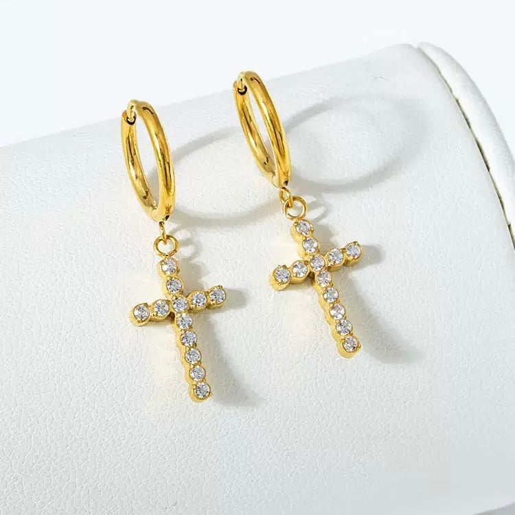Kreuz Ohrringe mit Zirkonia – 18K Vergoldeter Edelstahl Damen Schmuck