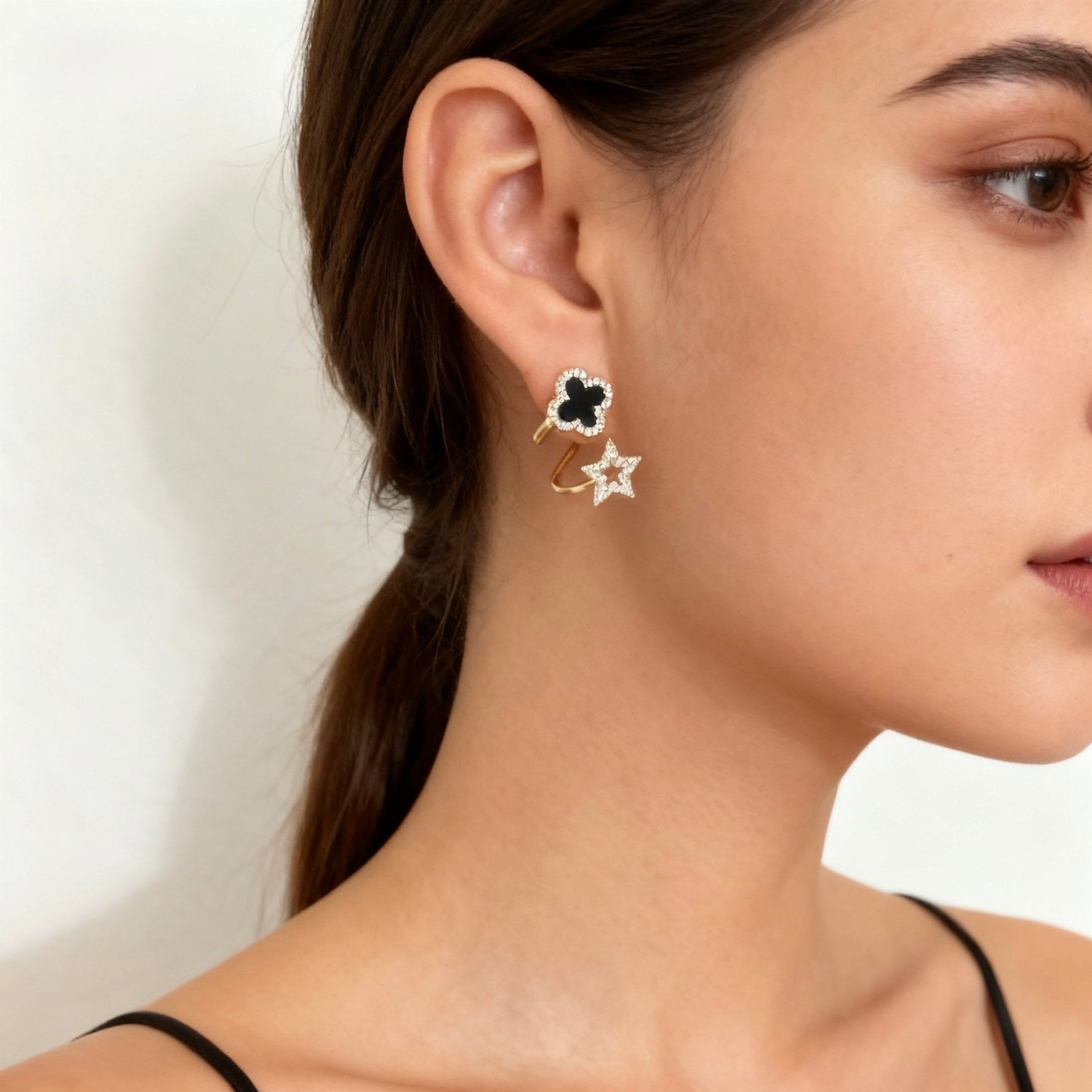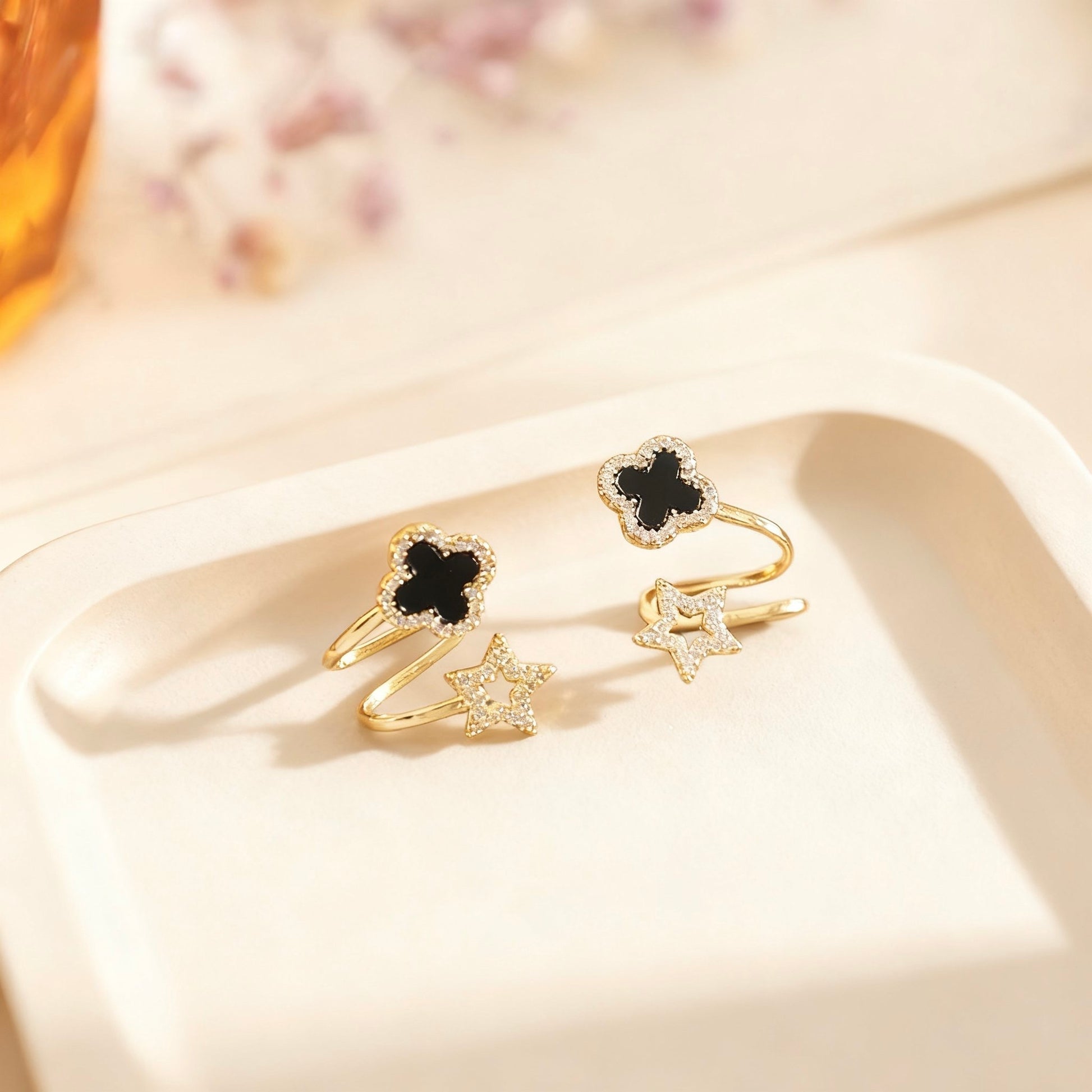 Design: Schwarzes Kleeblatt 🍀 & funkelnder Stern ⭐, besetzt mit Zirkonia