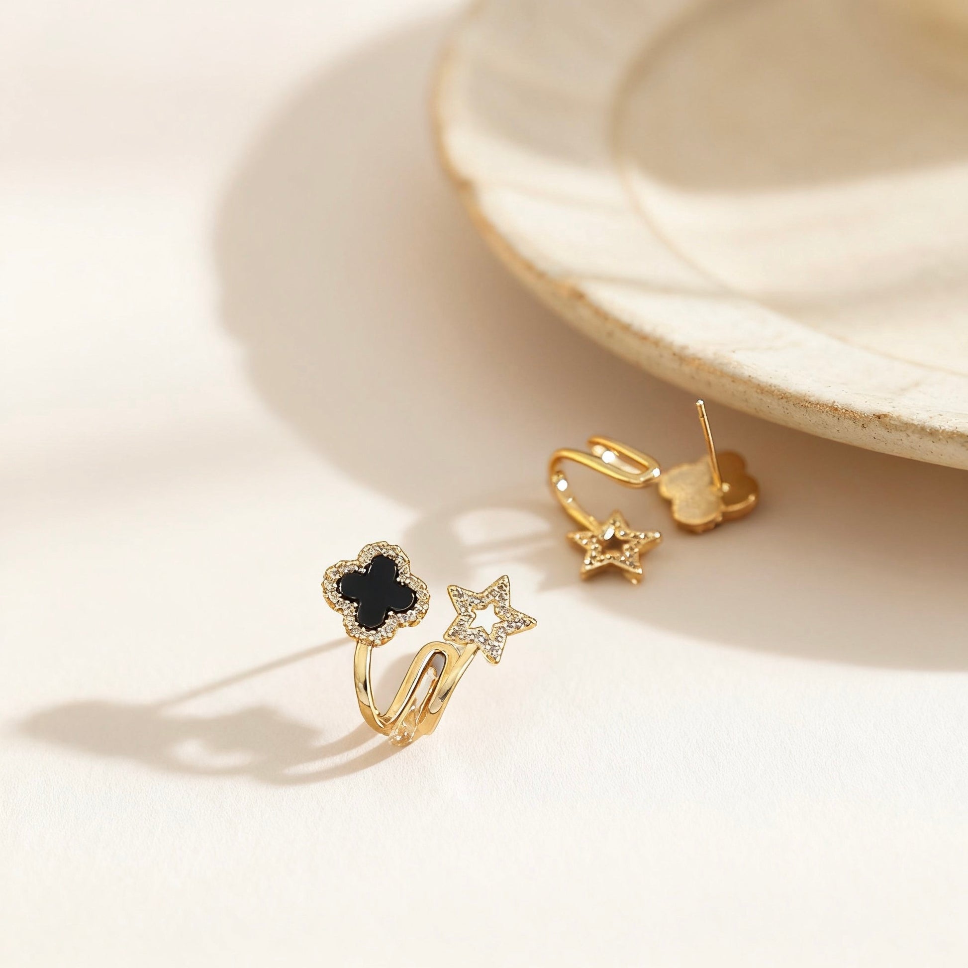 Ohrrstecker mit Schwarzem Kleeblatt & Stern