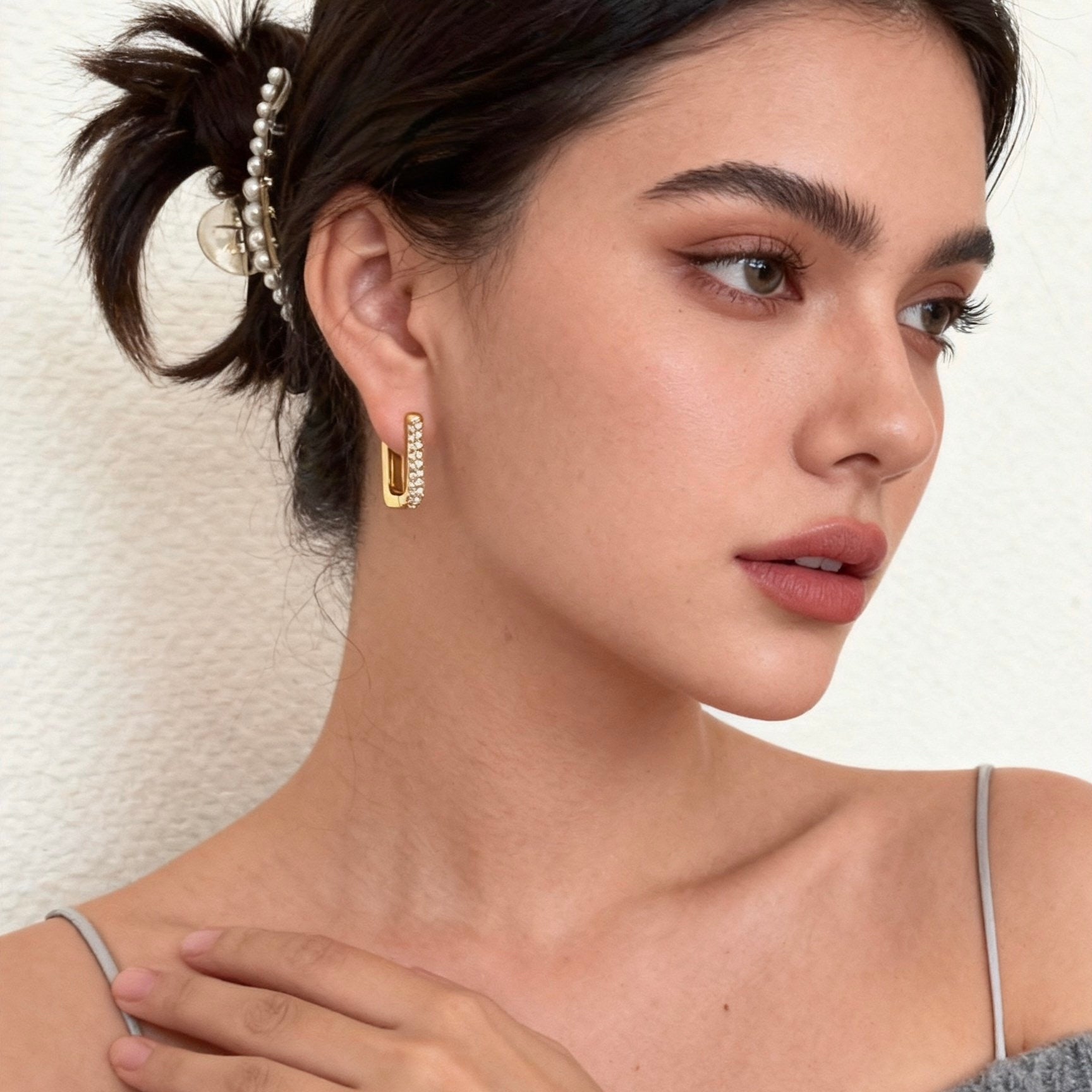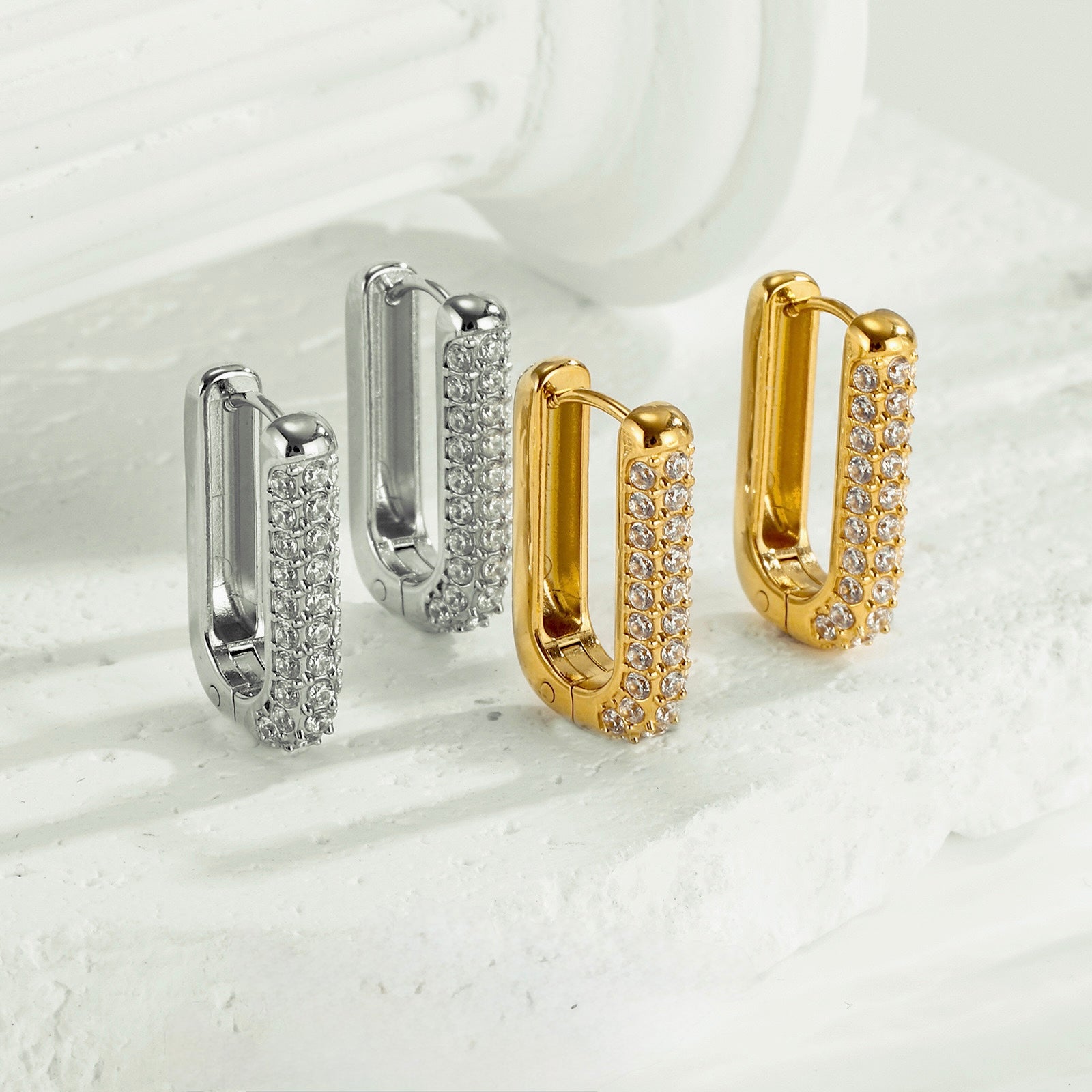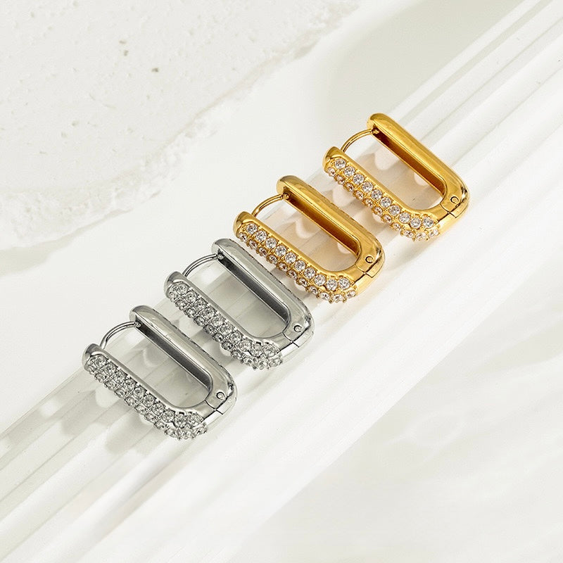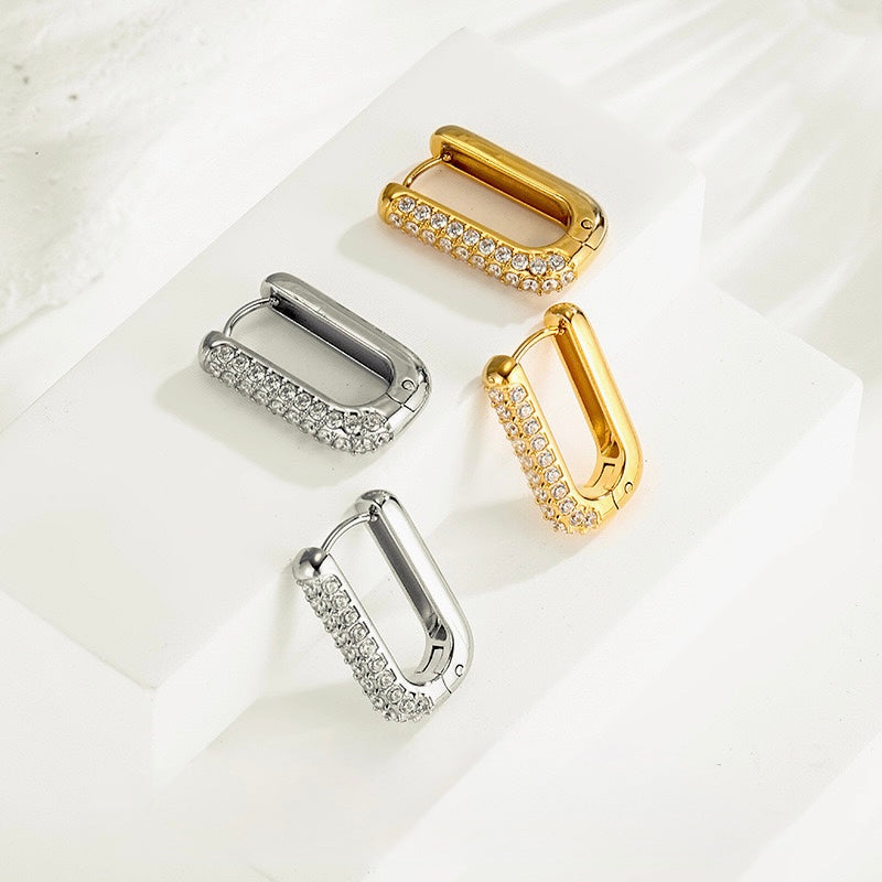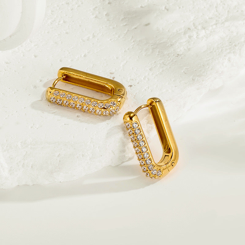 Diese U-Form Ohrringe sind ein echtes Highlight für alle, die Luxus & Glanz lieben ✨. Gefertigt aus Titanstahl mit 18K Vergoldung und besetzt mit funkelnden Zirkonia-Steinen, bringen sie sofort Glamour in jeden Look.